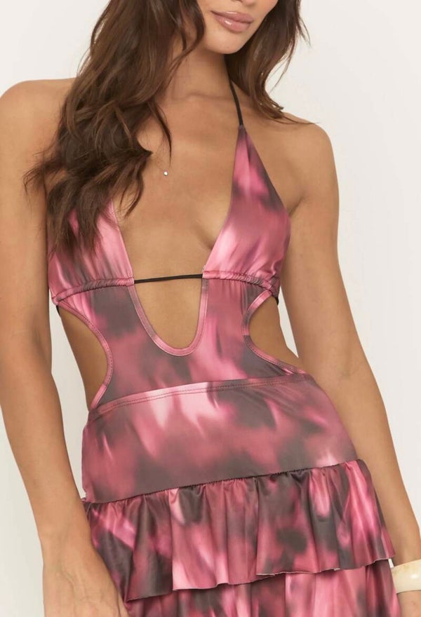 Step With Style In This Backless Cut Out Frill Mini Dress.