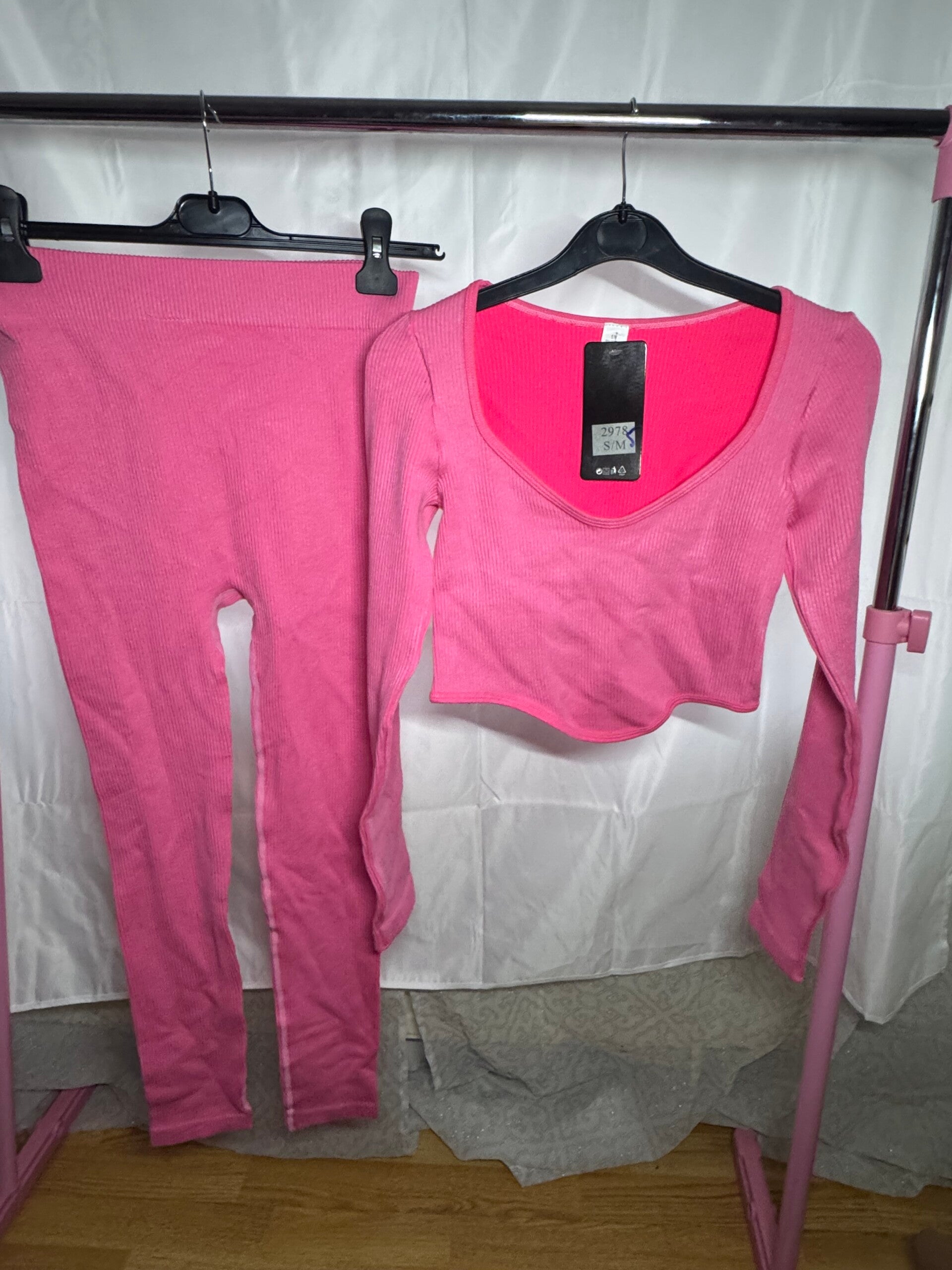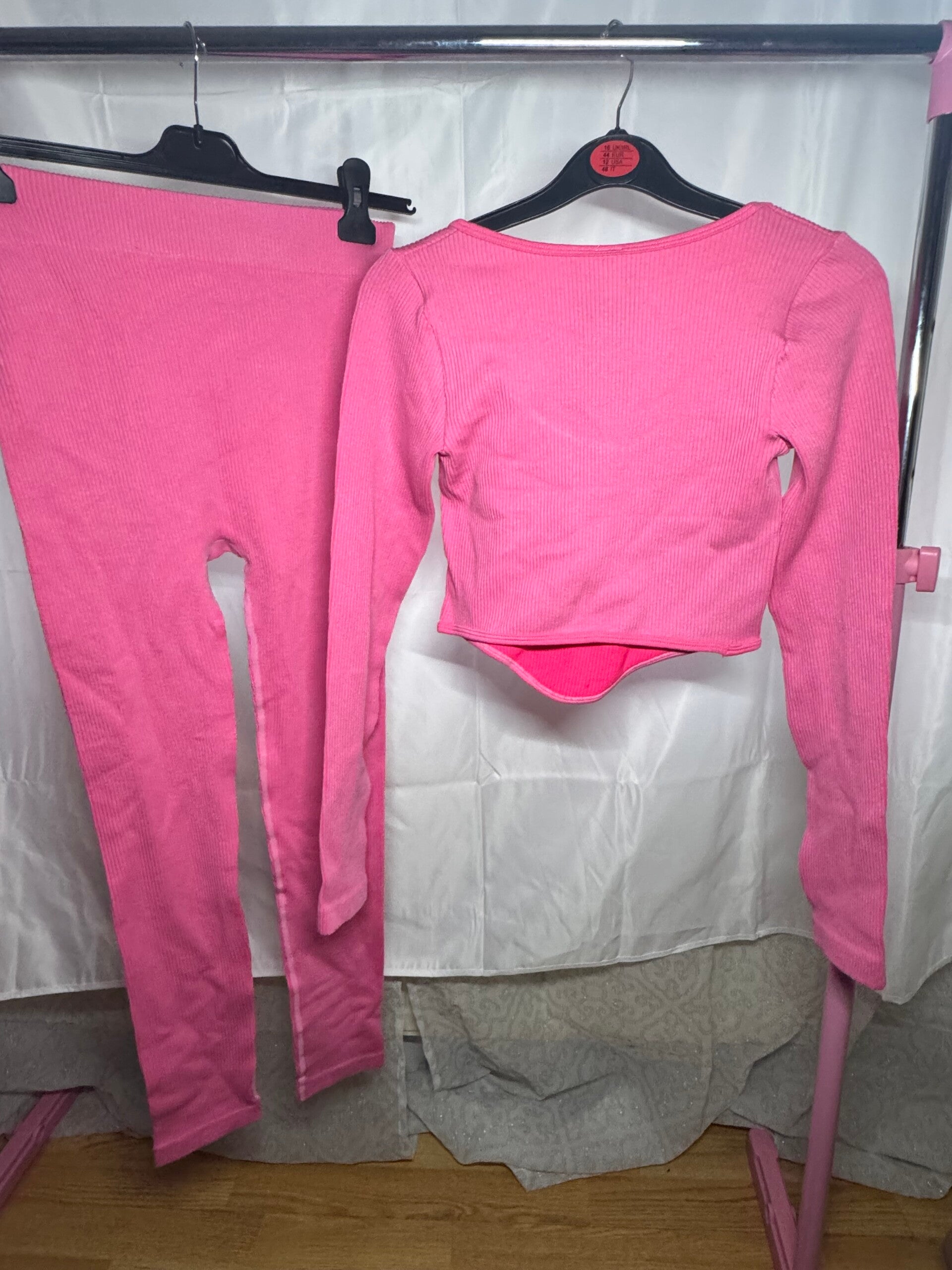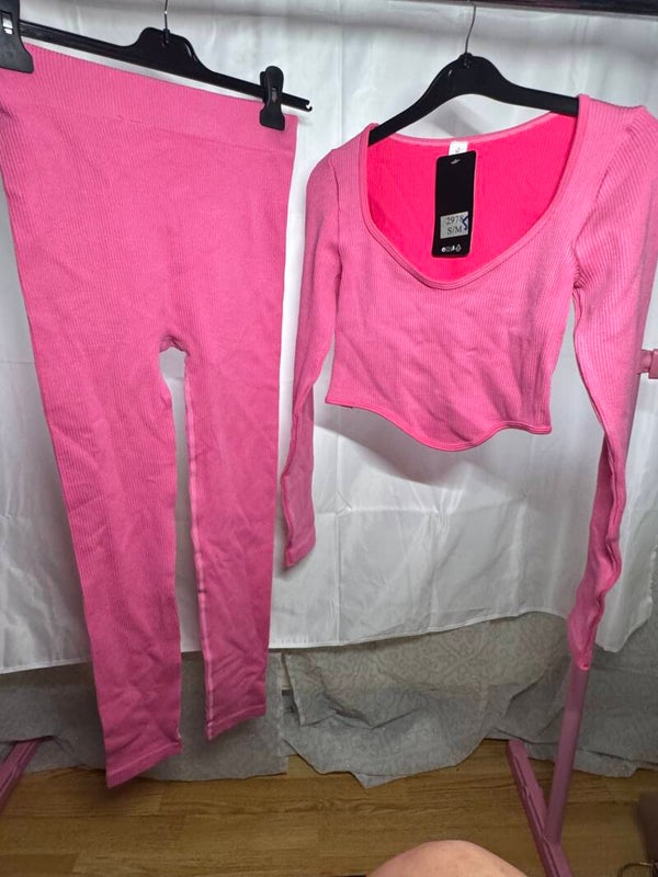 Step with style in this ribbed v-neck crop top and leggings co-ord.